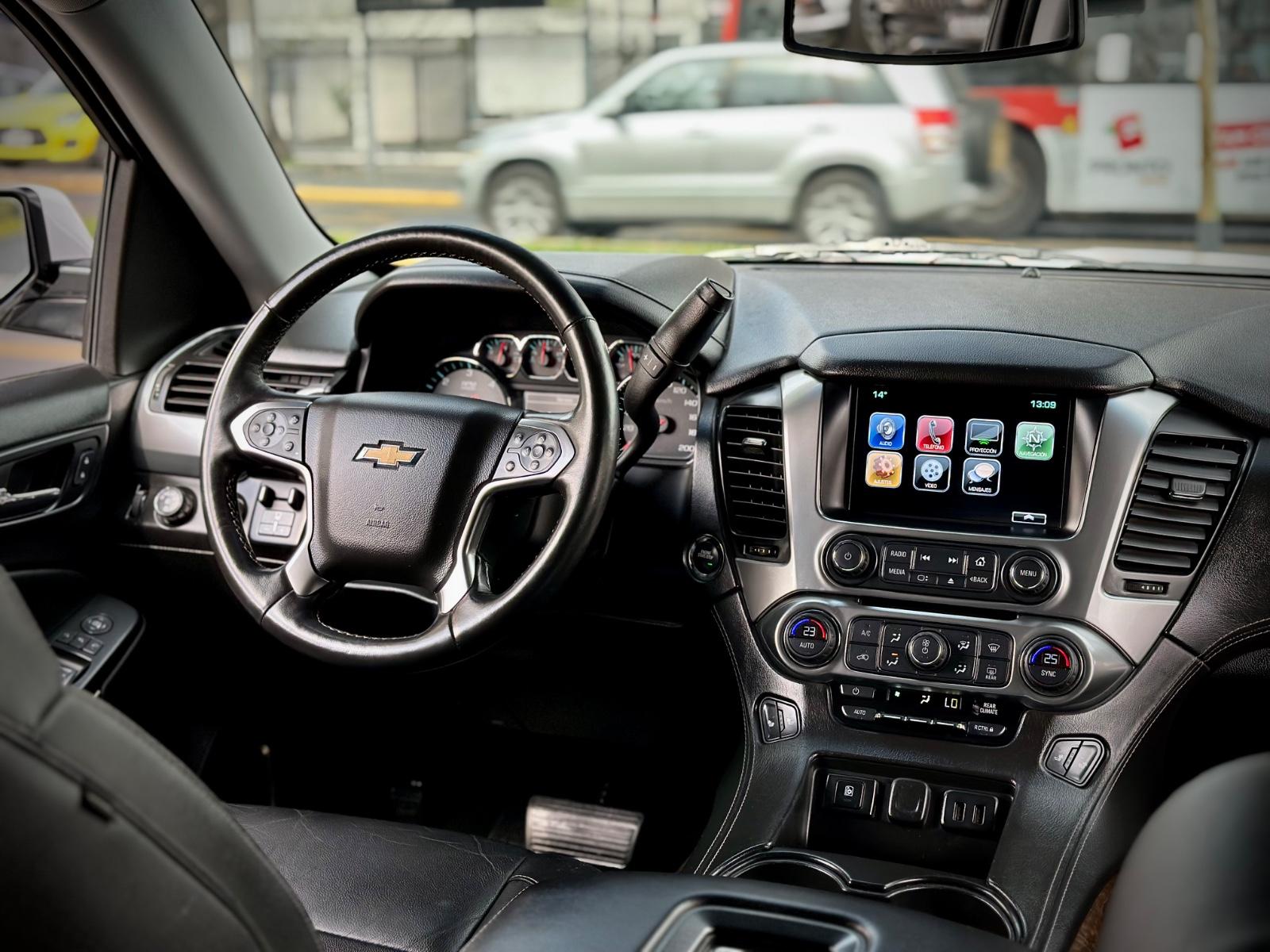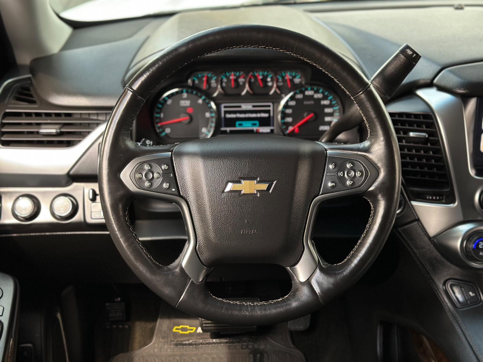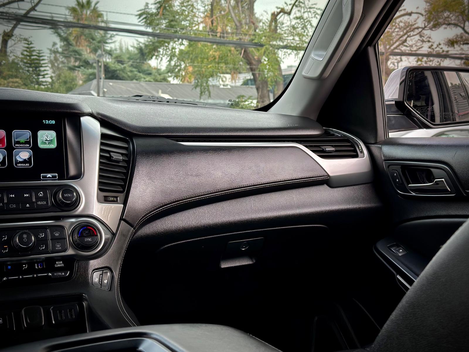 Chevrolet Tahoe LT AWD 5.3 V8 2017, SUV full size equipada con motor 5.3 V8 a gasolina y transmisión automática, con 70.137 km. Destaca por su capacidad y confort, incorporando tracción AWD, selector 4x4 y sistema de asistencia a la conducción como mantenimiento de carril y asistente pre colisión. Exterior con luces de xenón, neblineros, llantas de aluminio y sensores de estacionamiento 360°, además de pisadera de acceso y portalón trasero eléctrico con doble apertura. Interior amplio con 3 corridas de asientos, butacas eléctricas, calefactables y con memoria para conductor, climatizador de 3 zonas y sunroof. Incluye sistema de audio premium Bose, pantallas de entretenimiento traseras, consola central refrigerada, volante multifuncional calefactable con ajuste eléctrico y sistema de infoentretenimiento con almacenamiento, entregando máximo confort para viajes largos y uso familiar.
