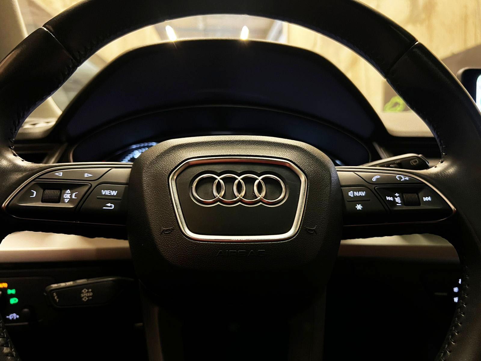 Mantenimiento al día, dos juegos de llaves, versión 45 TFSI, motor cuatro cilindros en línea 2.000 CC turbo, caja de cambios automática con paddle shift, modos de conducción, tracción integral permanente QUATTRO, volante multifuncional con velocidad crucero y reconocimiento por voz, computador a bordo, pantalla con cámara trasera de estacionamiento y conectividad para Apple CarPlay y Android Auto, climatizador, control de descenso y estabilidad, botón de encendido start-stop, techo panorámico asientos eléctricos, faros LED y xenón, portalón eléctrico.