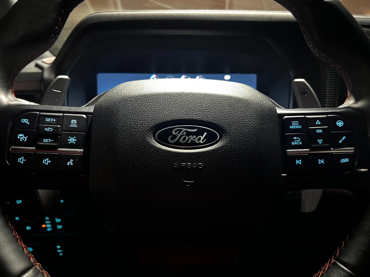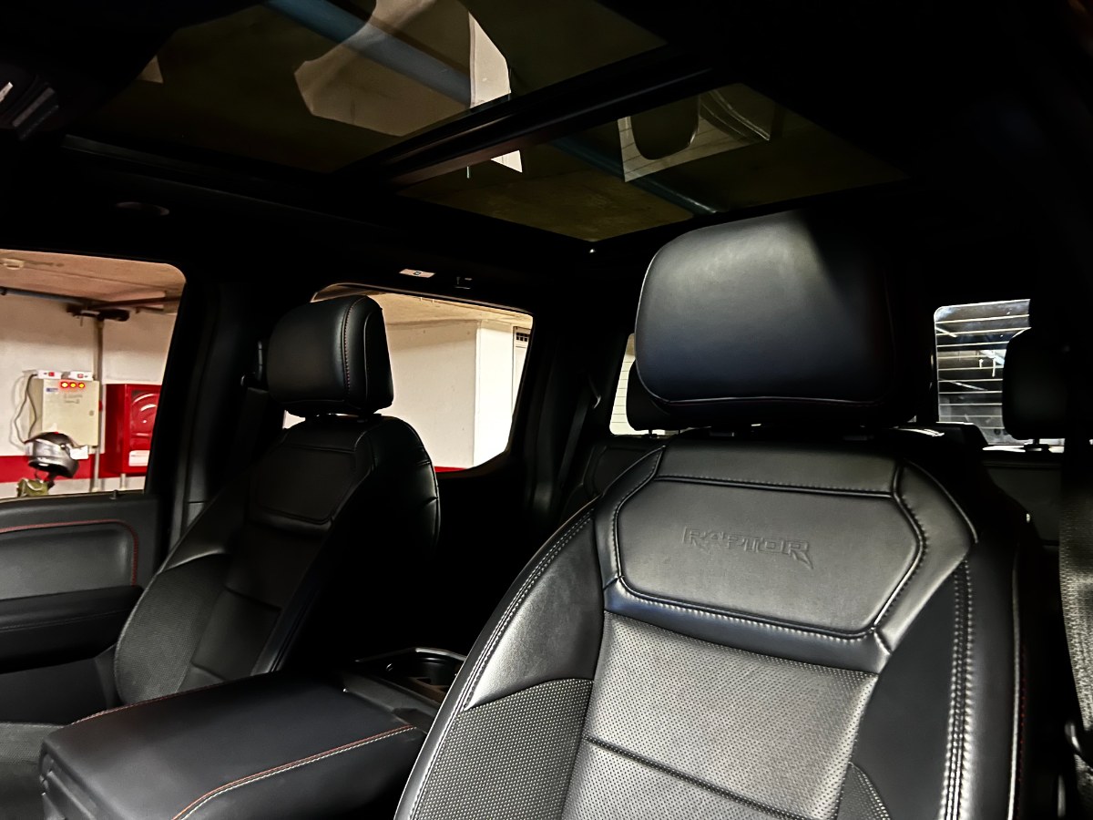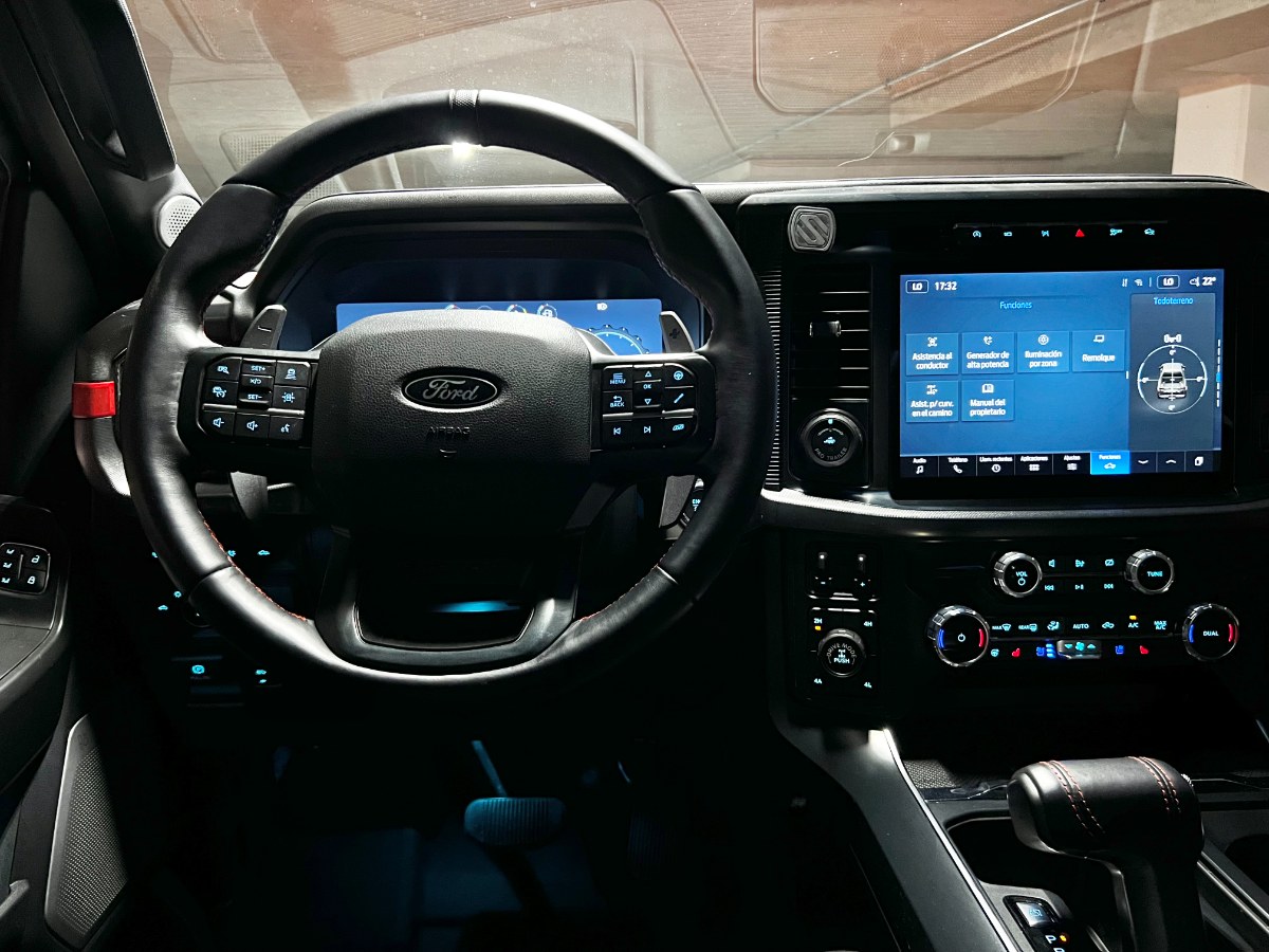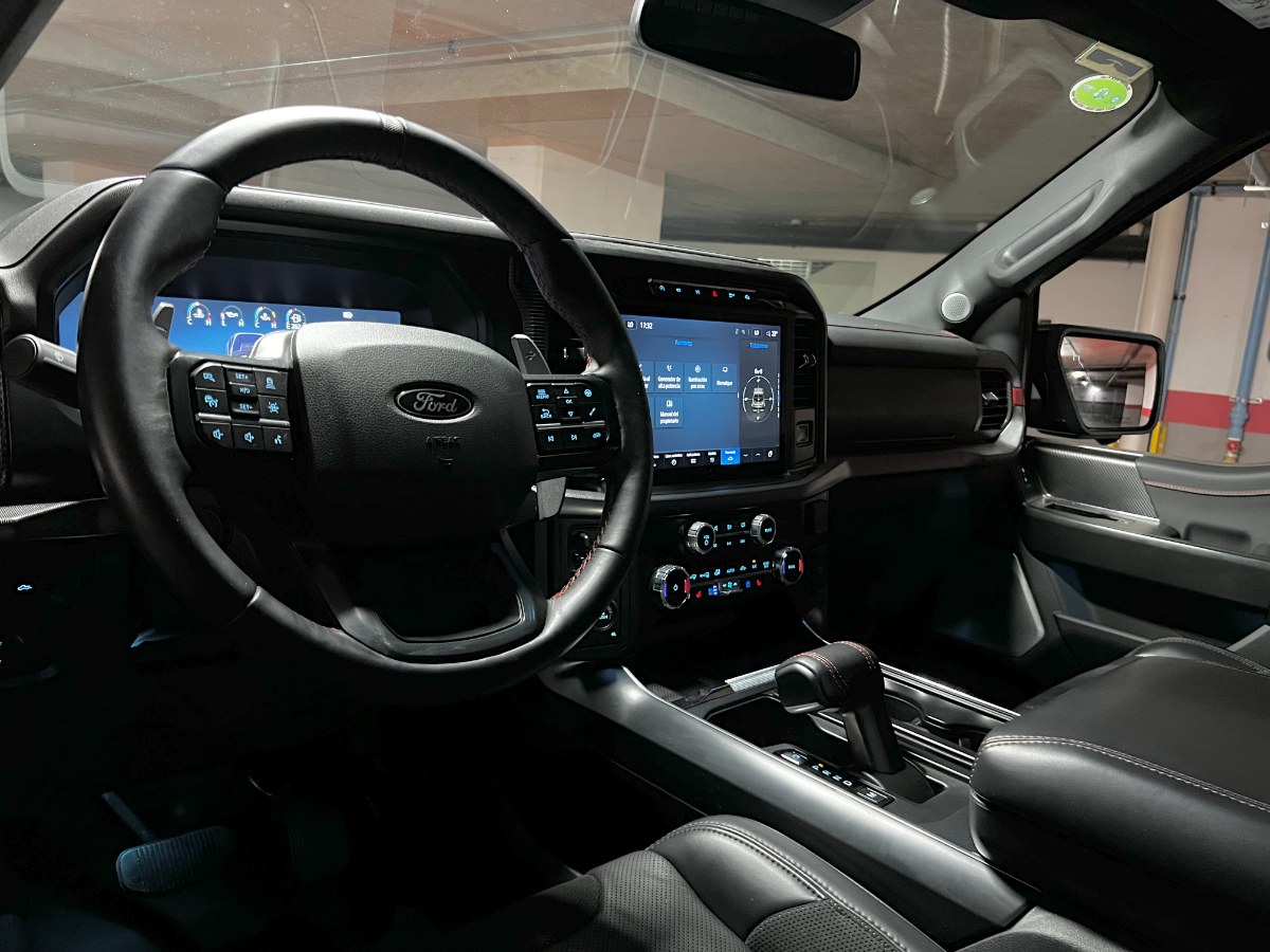 NO FACTURABLE. Único dueño, dos juegos de llaves, versión Raptor, motor 3.500 CC Ecoboost, caja de cambios automática diez velocidades con Paddle shift, tracción 4x4 con reductora y bloqueo de diferencial, neumáticos BF Goodrich, pisaderas laterales, compartimiento rígido plegable cubre carga, modos de conducción, volante multifuncional con velocidad crucero y reconocimiento por voz, head up display, reconocimiento vocal y calefacción, computador a bordo, pantalla touch con cámaras de estacionamiento (trasera, delantera y laterales) y conectividad para Apple CarPlay y Android Auto, sistema de audio alta fidelidad Bang & Olufsen, climatizadores delanteros independientes, asientos eléctricos con memorias, calefacción y enfriador en tres niveles, sunroof.
