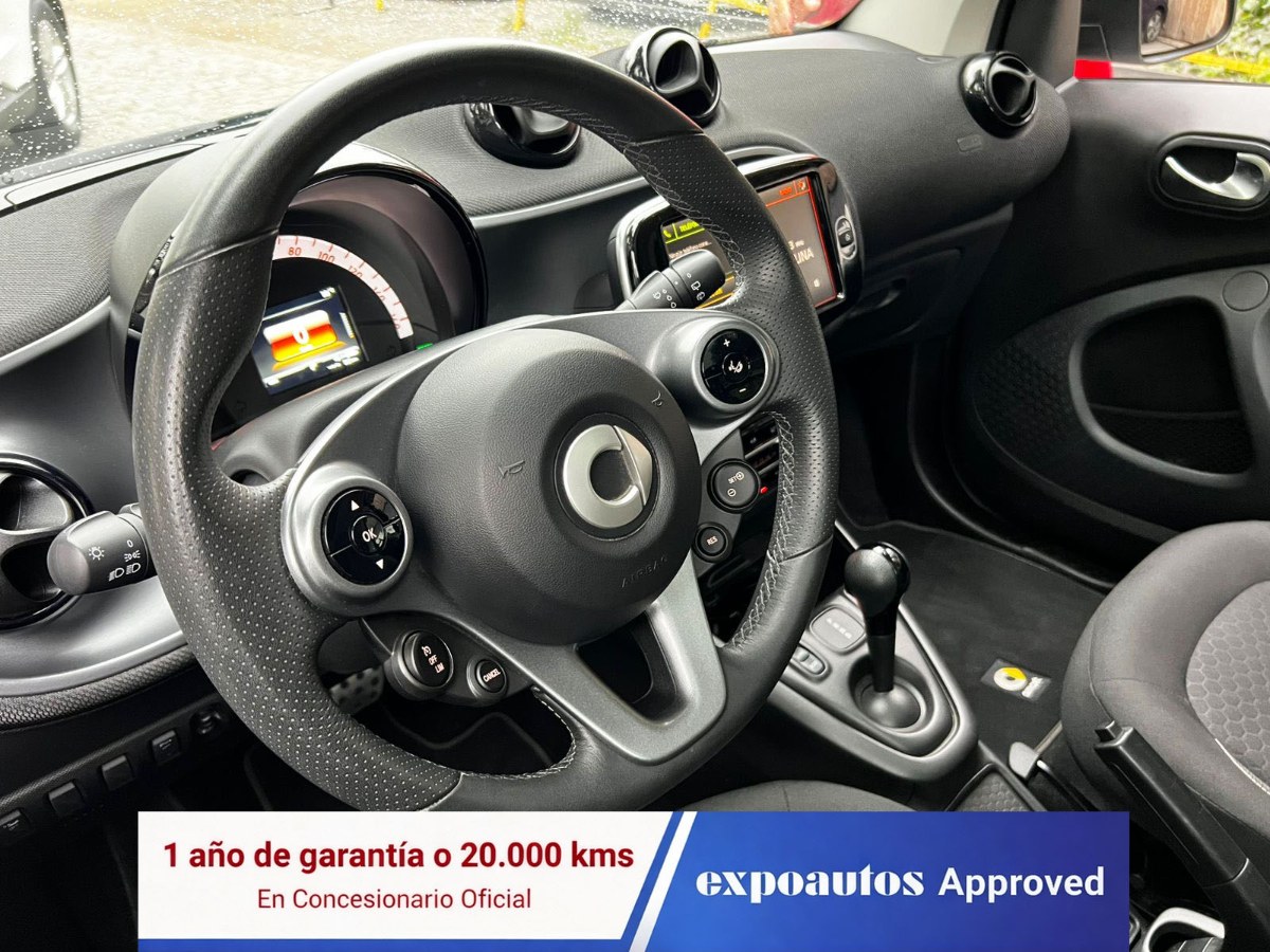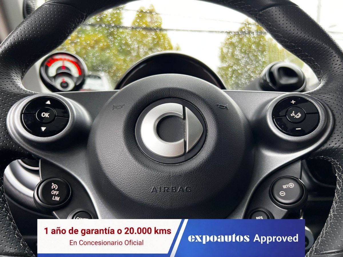 Único dueño, mantenimiento en la marca, autonomía entre 110 y 130 kilómetros con una sola carga, dos juegos de llaves, equipo Brabus, 100% eléctrico, modos de conducción, volante multifuncional con velocidad crucero y limitador, computador a bordo, pantalla touch con cámara trasera de estacionamiento, conectividad para Apple CarPlay y Android Auto, control de estabilidad, sensores de estacionamiento, climatizador, techo panorámico, asientos con calefacción, faros LED.