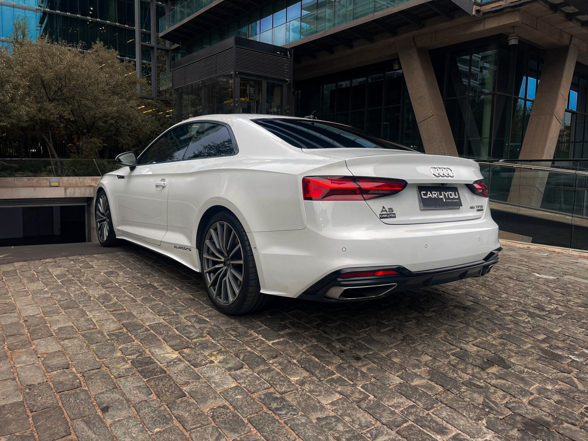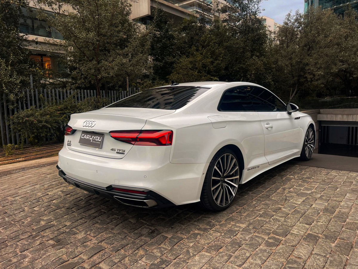 AUDI A5 2.9 TFSI RS5 Tiptronic Quattro año 2021 color BLANCO, caja de cambio automática, con 73643 kilómetros. Este elegante vehículo cuenta con pantalla multimedia para mayor entretenimiento a bordo, cámara de retroceso para facilitar las maniobras, airbags para la seguridad de todos los ocupantes y frenos ABS para una conducción más segura. Además, está equipado con climatizador para mantener la temperatura ideal en el habitáculo en todo momento. Las mantenciones y papeles se encuentran al día, brindando tranquilidad al nuevo propietario. En cuanto a conectividad, este AUDI A5 2.9 TFSI RS5 cuenta con Apple CarPlay y Android Auto, permitiendo integrar fácilmente dispositivos móviles para acceder a diversas funciones de manera intuitiva. Con un motor de alta gama y tecnología de punta, este AUDI A5 ofrece un rendimiento excepcional en cada viaje. Su caja de cambios automática proporciona un manejo suave y eficiente, destacando por sus X velocidades (ejemplo: 8 velocidades Tiptronic). Una oportunidad única de adquirir un AUDI A5 2.9 TFSI RS5 en impecables condiciones y con prestaciones de lujo que garantizan una experiencia de conducción inigualable. ¡No dejes pasar esta oportunidad de destacar en las calles de Chile con este magnífico vehículo!