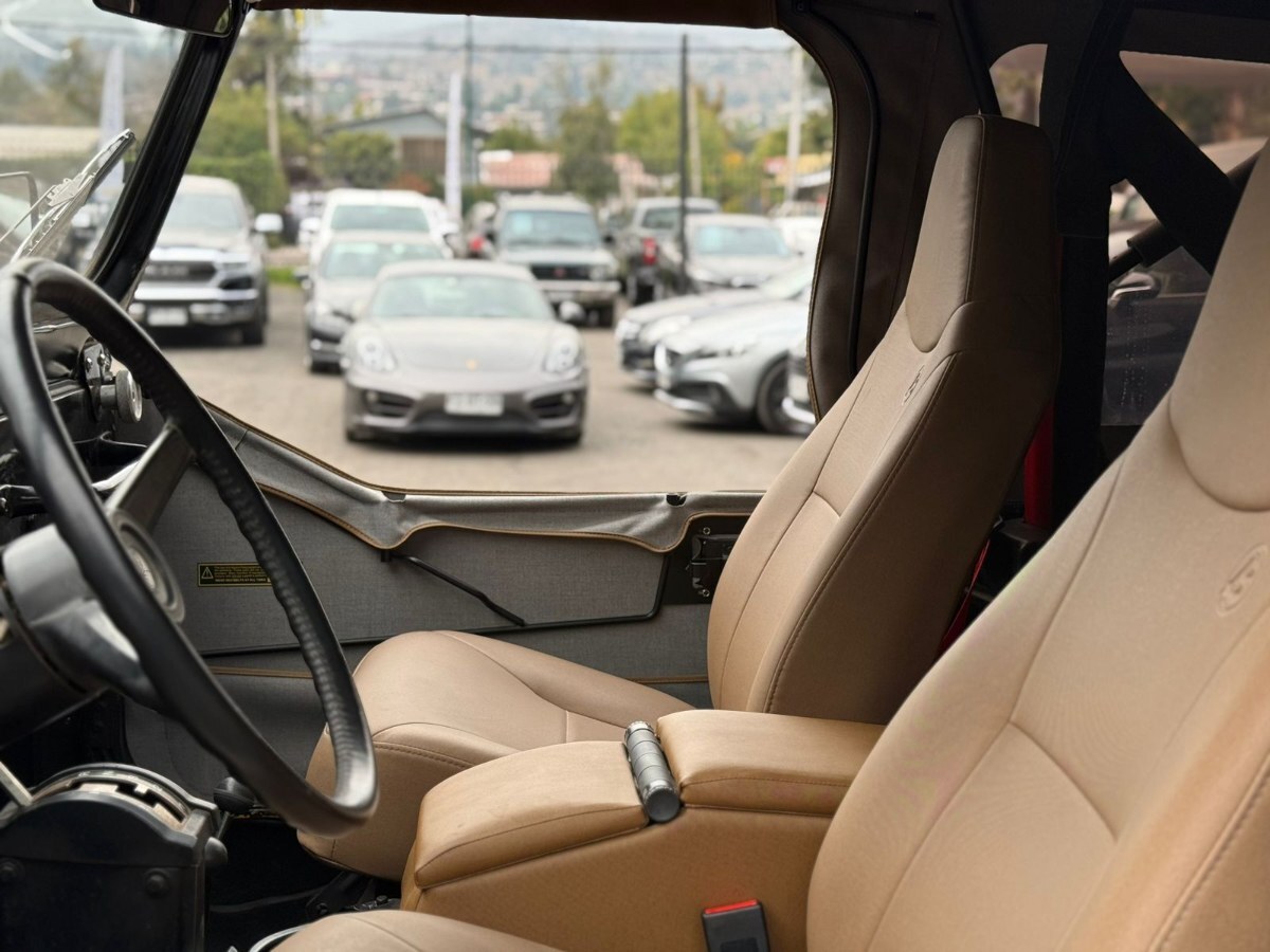 Equipo extra (dos juegos de puertas, capota de lona y fibra, butacas delanteras y traseras Bestop, sistema de audio, llantas y neumáticos Cooper ST 33x12,50), motor ocho cilindros 5.700 cc, caja de cambios automática, tracción 4x4.